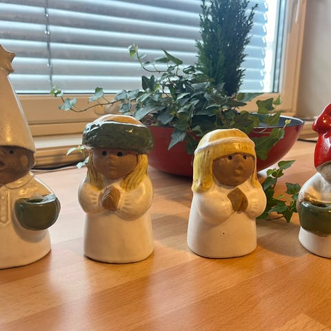 En flott relieff, i form av et smilende kvinne ansikt. Den er holdt i de kjente blå farger fra den danske kunstneren Bjørn Wiinblad (1918-2006).
