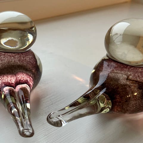 To glassfugler fra Hadeland glassverk, formgitt av Severin Brørby.