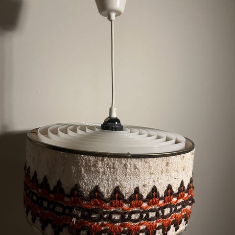 Selger en vintage emaljert 60 talls Aluminiumslampe fra IKEA.