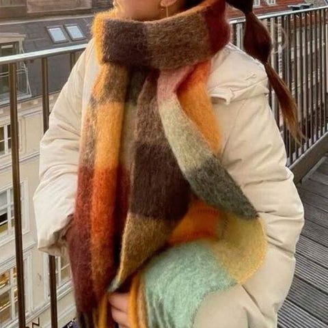 Ubrukt skjerf i bomull. Opprinnelig kjøpt på Match våren 2025, unisex, 182 x 61,mønster på begge sider