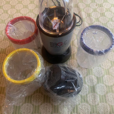 Magic Bullet blenderkanne med lokk, laget av gjennomsiktig plast. Inkluderer to ekstra lokk for oppbevaring. Passer til Magic Bullet blenderen. Ca 300 ml