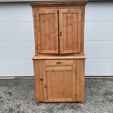 Skapet har tre fine små skuffer i ene delen.Nydelige utskjæringer.