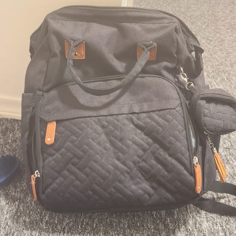 Praktisk og romslig stellebag med integrert babyseng og madrass!