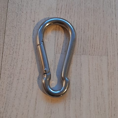 Karabinkroker med snap hook, 7 mm størrelse, tilgjengelig i rød og blå farge. Maksimal belastning på 20 kg.