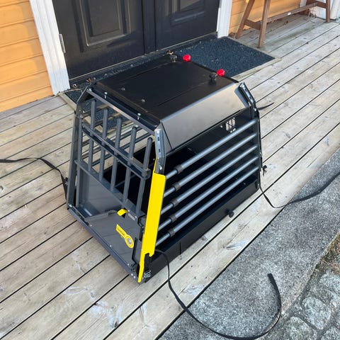 MIM VarioCage hundebur med solid konstruksjon og sikker låsemekanisme. Egnet for trygg transport av hunder i bil. Buret er testet for støt og har ventilasjonsspalter for luftgjennomstrømning.