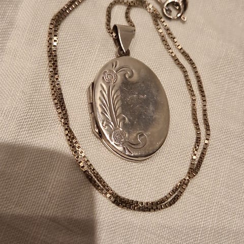 Nydelig vintage stor medaljong/ halskjede med anheng sølv 925s plass til bilder