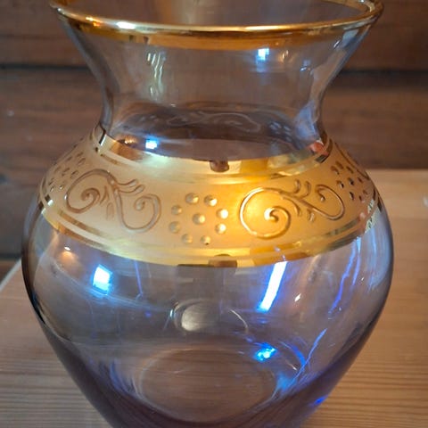Høyden ser ut til å være omtrent 12 cm, uten nagg eller sprekker, kun lette bruksspor innvendig, og passer godt til noen få stilker eller som ren pyntegjenstand.