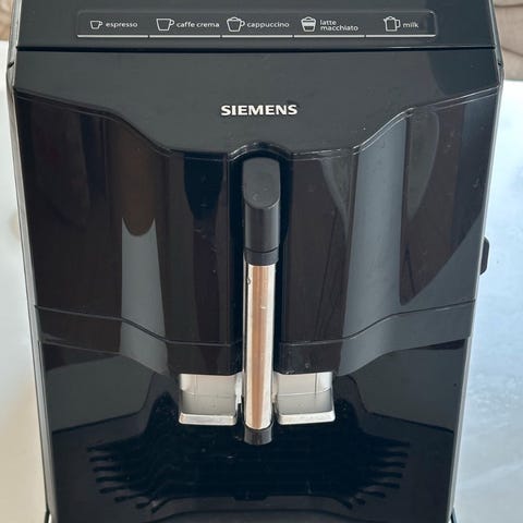 Siemens automatisk espressomaskin med kapasitet for to kopper samtidig. Maskinen har et svart design med en vanntank på 1,9 liter.. Passer for hjemmebruk med mulighet for å lage ulike kaffedrikker som espresso og latte macchiato.