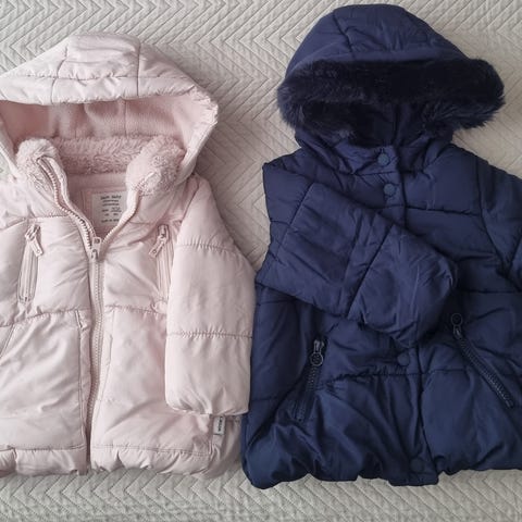 Jakken og buksen er et sett, jakken har myk froté inni. Disse er str 92 Dere kan få med den tynne jakken med hjerte, den er str 80, men ganske stor