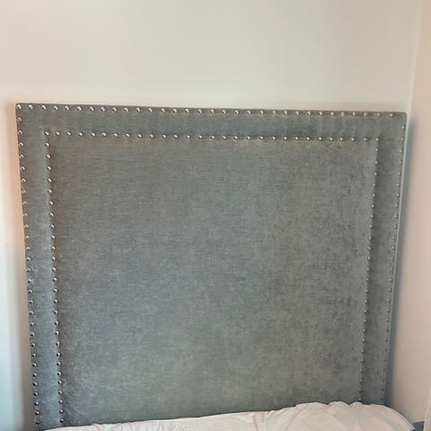 2 stk helt nye og ubrukte sengegavler trukket i blå lin. Passer til 90 seng. 90 cm høyde og 100 cm bredde. 8 cm tykk. Kjøpt i Danmark. Kr 1900 pr stk. Kr 3500 for begge.