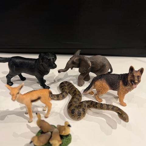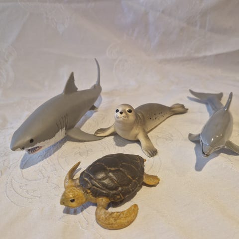 Samling av dinosaur- og dyrefigurer i plast Schleich