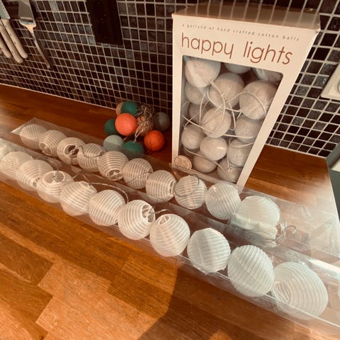 To helt nye lyslenker med grønt, er 390 cm i lengde per lenke. Selges til 100 kr