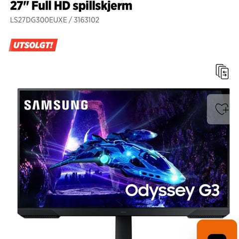Samsung Odyssey G5 27-tommers skjerm. 165Hz. Justerbar fot. Skjermen har en størrelse på 27 tommer og er egnet for bruk til både arbeid og gaming.