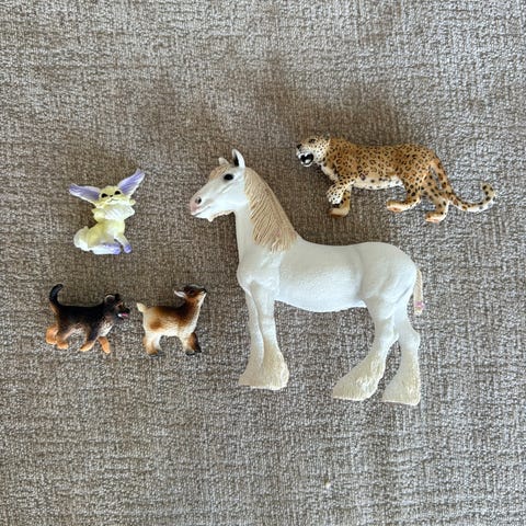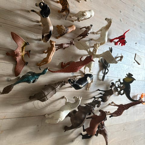 Selger masse fine schleich leker med 36 hester, 11+ figurer samt 22 mennesker/ryttere med masse spesialutstyr (se bilder, alternativt google det for å sjekke hvilken serie). Masse er veldig sjeldent og kjøpt i utlandet . Har masse ekstra utstyr (fikk ikke tatt bilde av alt). Alt selges med tungt hjerte ettersom datteren min har vokst fra det. Kan vurderes og selges individuelt men da er det pris på forespørsel.