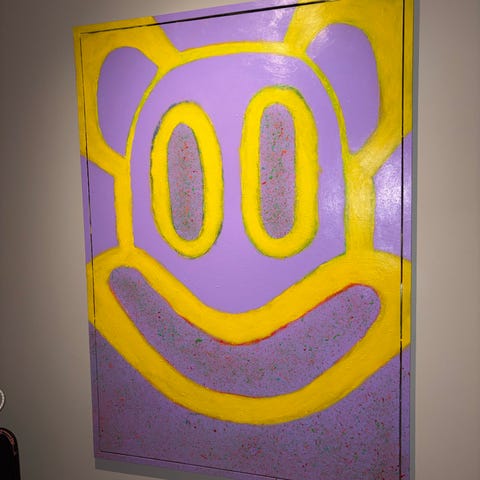 Bildet er i str 100x100 cm og er signert på baksiden.