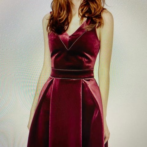 Fra nettside: Royani-kjolen fra det anerkjente merket Maje. Den har en flatterende passform og utsvingt silhuett, med et bølgende strukturert skjørt som gir et dramatisk volumdesign, og er definert av intrikate broderte blonder for en virkelig feminin finish. Maje blondekjole med synlig glidelåslukking bak. Rund hals, lange ermer, heldekkende broderte detaljer, strukturert linning, kontrasterende kantbånd, heldekkende skjørt, sømlommer i sidene, nettingfôr, helfôret.