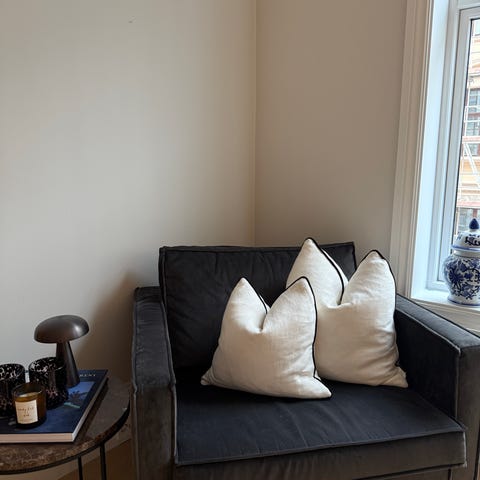 Lite brukt. Tatt godt vare på. Stoff velour. Farge lysgrå.