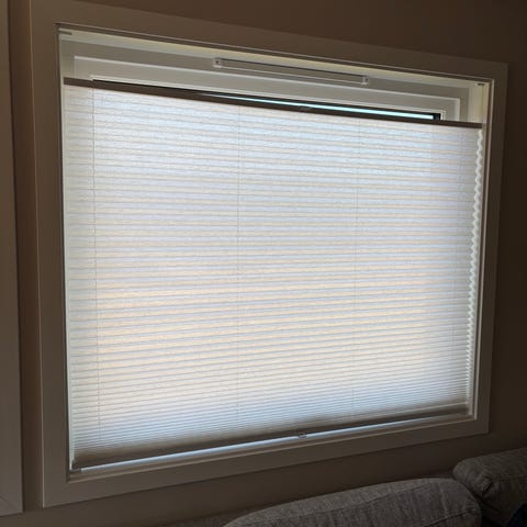 Gardinet er nesten ikke brukt, så mekanismen fungerer utmerket. Den har imidlertid vært montert på kjøkkenet, og er litt skitten/flekkete - se bilder. Mulig det kan vaskes bort på et vis, men jeg har ikke forsøkt.