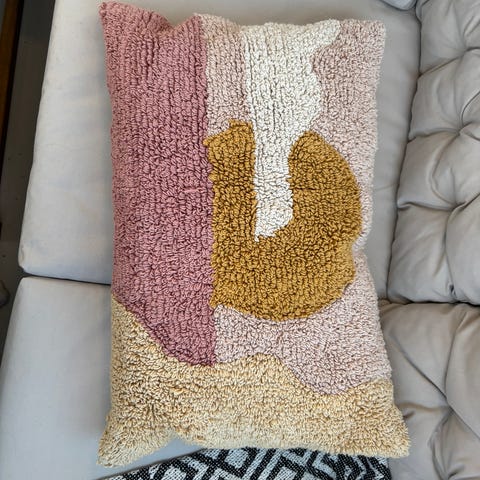 Pent brukt sofapute i fine farger, kan brukes på begge sider. Ingen flekker eller hull.