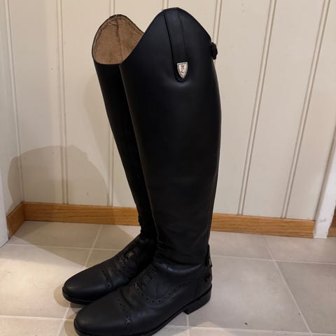 Gabor støvler for dame i størrelse 37. Støvlene er svarte og laget av skinn. De har en kilehæl og en glatt såle.