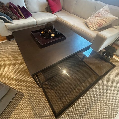Salongbord fra Slettvoll med bronsefarget glassplate