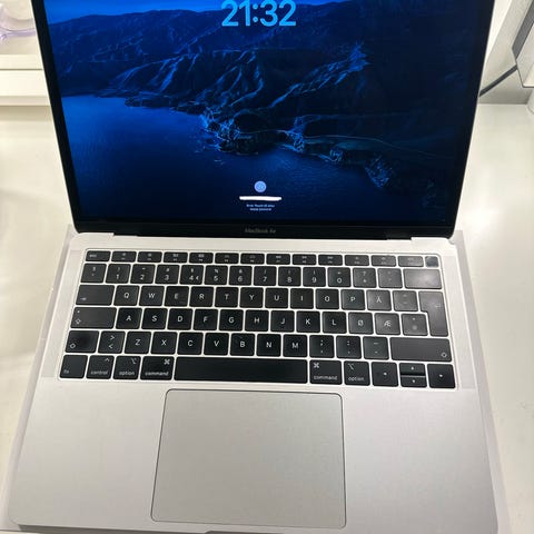 Selger en pent brukt MacBook Air 13” (2017). Maskinen har vært brukt til studier og lett arbeid, og fungerer bra til nettsurfing, kontorarbeid og generelle oppgaver. Kjøpt ny i 2019.