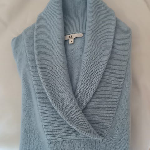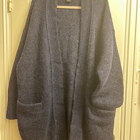 Str medium, armhule til armhule 55 cm, høyde 66.5 cm. Soft og god, brettet opp ermene, lett og fluffy. Kan sende.