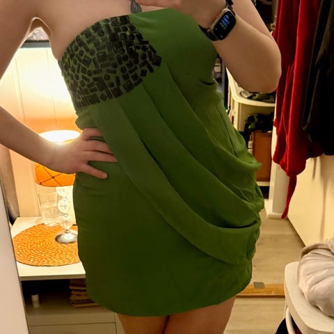 Kjolen er å se i tv serien*Real Housewives of Beverly Hills: Season 7 Interviews: Dorit Kemsley`s Green Dress