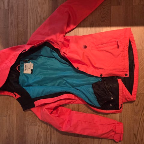 Selger pent brukt ski-/snowboard jakke uten synlige merker. Buksen kan også følge med gratis men den bør sys nederst på det ene foten.