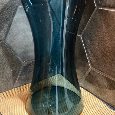 Bjørg Lauvrak glassfat, glass med blå sommerfugl