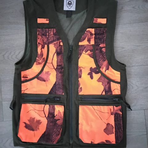 Budor Vest Edge Blaze jaktvest i størrelse XXXL. Vesten har et kamuflasjemønster. Fôret, lett vannavstøtende. Aldri brukt. Normal i strl, selges kun fordi eg har en annen eg foretrekker.
