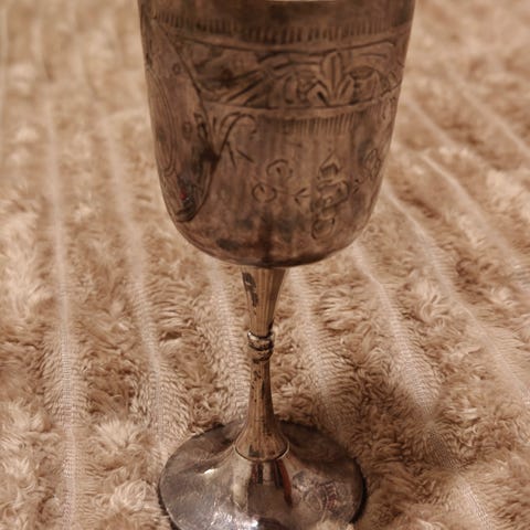 Til salgs er et elegant, dekorativt forsølvet beger i jugendstil. Dekorert med et særegent, flytende blomsterornament typisk for stiler fra det 20. århundre.