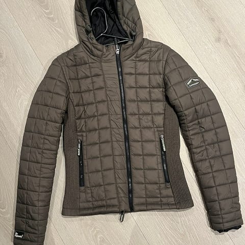 Superdry Fuji vinterjakke i størrelse XL for kvinner. Jakken er rød og laget av polyester. Den har hette og flere lommer med glidelås. Jakken er designet for å gi varme og beskyttelse i kalde værforhold.
