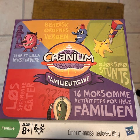 Cranium er et underholdende og variert selskapsspill der kreativitet, kunnskap og samarbeid står i sentrum. Spillerne får bryne seg på alt fra tegning og miming til ordleker, faktaoppgaver og modellering med leire. Et perfekt spill for familiespillkvelder eller vennegjenger som liker mye latter og høy energi rundt bordet.