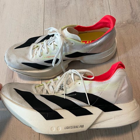 Mizuno Energy Runnerz løpesko for dame i størrelse 39. Skoene har svart farge med detaljer i lilla og oransje. Designet for løping med fokus på komfort og ytelse.