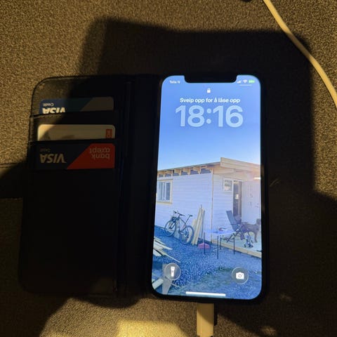 Den har et lite hakk i siden men det gjør ikke noe særlig med denne telefonen selges pga overgang til nyere