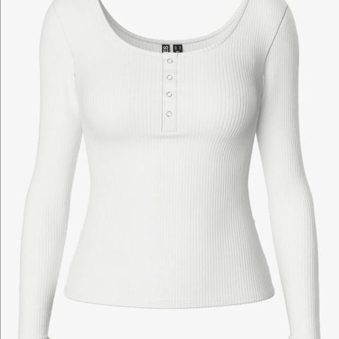 Myk genser i kremhvit farge. Har klippet bort lappen men det er mest polyester/ nylon i den. Noen nupper her og der som sikker kan fjernes med nupoefjerner. Står XS men er stor i str så kan passe også S-L.