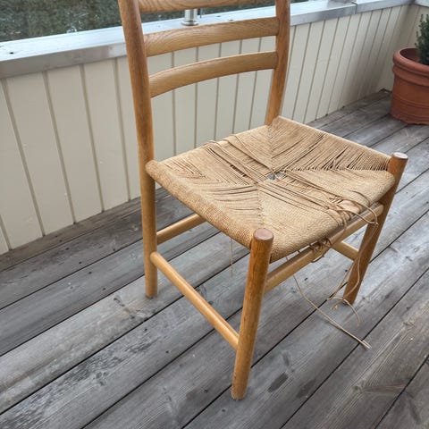 Dette er et godt kjøp for deg som heller vil ha gjennomtenkt nordisk design enn nye, anonyme stoler. Selges fordi jeg har flere prosjekter på gang og må prioritere plass.