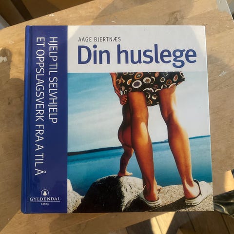 Huslegen av Aage Bjertnes, spesialist i allmennmedisin. Praktisk bok som inneholder 2000 råd om hvordan du kan håndtere vanlige helseproblemer. Utgitt av Gyldendal forlag i 1999. Ubrukt, som ny.