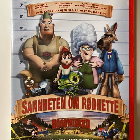 Sannheten om Rødhette DVD med norsk tale. Animert film med originalversjon og ekstra materiale. Inneholder engelske undertekster og er i standard DVD-format.