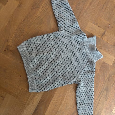 Selger denne brune strikkede genseren i str 9 år ca. Den er aldri brukt, selges for kr 200.