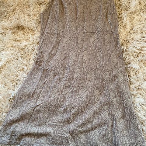 InWear festkjole i størrelse 42, laget av silke. Kjolen har en beige farge med mønster. Nyydelig foret kjole med flott liv og lengde.