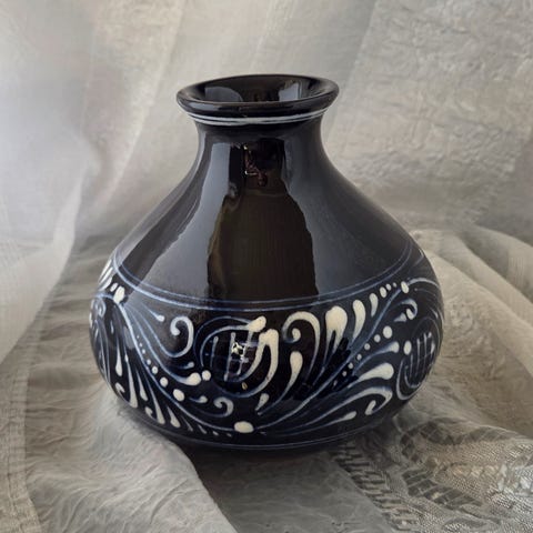 Søkeord Clarisse Cosse Clarisse Keramik Kos studiokeramikk studiovase liten vase budvase håndlaget keramikk hånddreid steingods signert vase gresk keramikk art pottery beige glasur håndmalt blomsterdekor rød blå grønn rund form høyde 10 cm smal åpning interiør pyntevase samlerobjekt keramikkunst vintage keramikk mediterran stil hyllepynt gaveidé kunsthåndverk bohem stil FINN kjøp nå