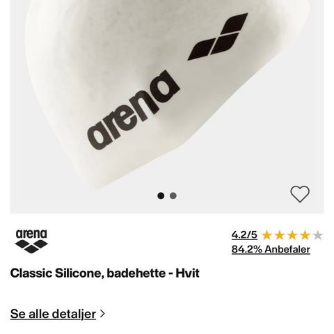 Selger en Arena silikon svømmehette i klassisk hvit.