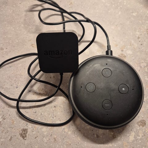 Dette er en amazon alexa, som man kan snakke med.