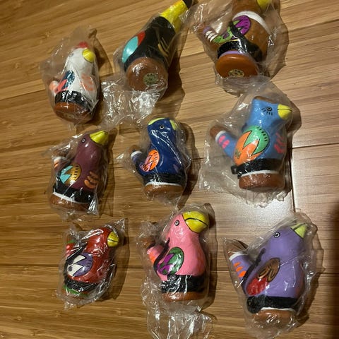 • Én fløyte merket "MADE IN INDIA" med tydelig vintage-håndlaget preg.