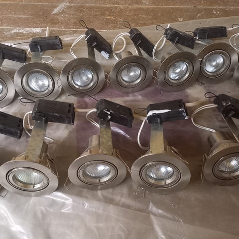 Brukt. Varen er i god fysisk stand med normale bruksspor på metallflaten. Pærer er inkludert, men levetiden deres garanteres ikke. Varen er demontert, ubekreftet og selges som den er. Vi antar at varen fungerer som forventet; kjøpere kan returnere den dersom den ikke fungerer som beskrevet.