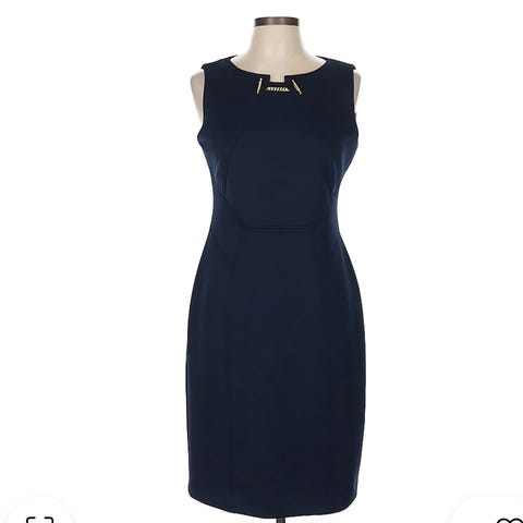 Kjolen er av merket After Six str 40 kjøpt på Agape for kr 2700,- Kjolen er mørk blå fløyel som skinner (se bildene). Den er fotsid med glidelås bak.