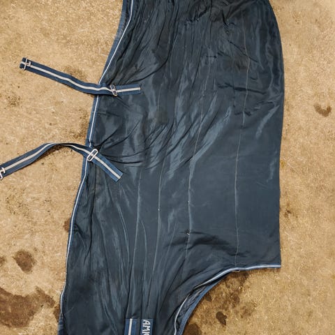 Har ikke kjennskap til alder eller vaskehistorikk da det ble kjøpt på Finn nylig- men ikke fått brukt /prøvd det på hesten da hun har nok av dekken.