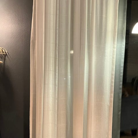 Tykke, vevde gardiner med nydelig grønnfarge på hvit bunn fra Kid selges billig. Kun hengt på et gjesterom. 150 kr til sammen for begge.